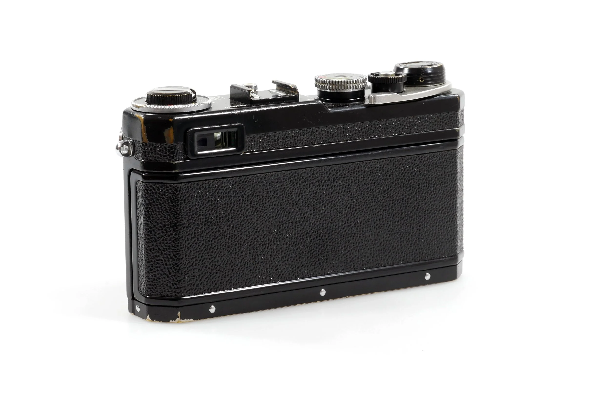 Released in 1957 this was Nikons flagship camera at the time, replacing the Nikon S2 which came out in 1954. The Nikon SP was Nikons final flagship rangefinder camera as the Nikon F would be released just two years later and pave the way for the future of the company. The SP had an improved viewfinder, with frame lines for, 50mm, 85mm, 105mm and 135mm, as well as a 35mm viewfinder off to the left of the main rangefinder window. For the time this was very advanced and allowed multiple lenses to be used without the addition of an external viewfinder. Unlike Canon who stuck with the tried and tested M39 thread mount Nikon adopted the Zeiss Contax mount and named it ‘S’ mount. These lenses had internal helicoils and like on many Contax cameras could be focused either by the lens itself or a small wheel in front of the film advance lever. This was a relatively unpopular mount not many lenses were developed for the system. The Nikon SP was also the first rangefinder camera to allow the addition of a motor drive and could shoot up to 3 frames per second.